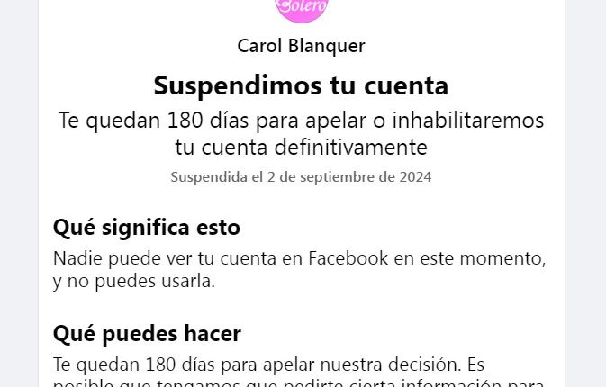 Nos han dado 180 días de plazo para apelar tal decisión, lo hemos hecho sin respuesta por parte de Facebook e Instagram por lo que si pasado ese plazo no nos han desbloqueado las cuentas muy tristemente y muy a nuestro pesar nuestros grupos y páginas de Radio Bolero y nuestras demás radios con contenidos de más de 11 años seran eliminados al eliminar las cuentas